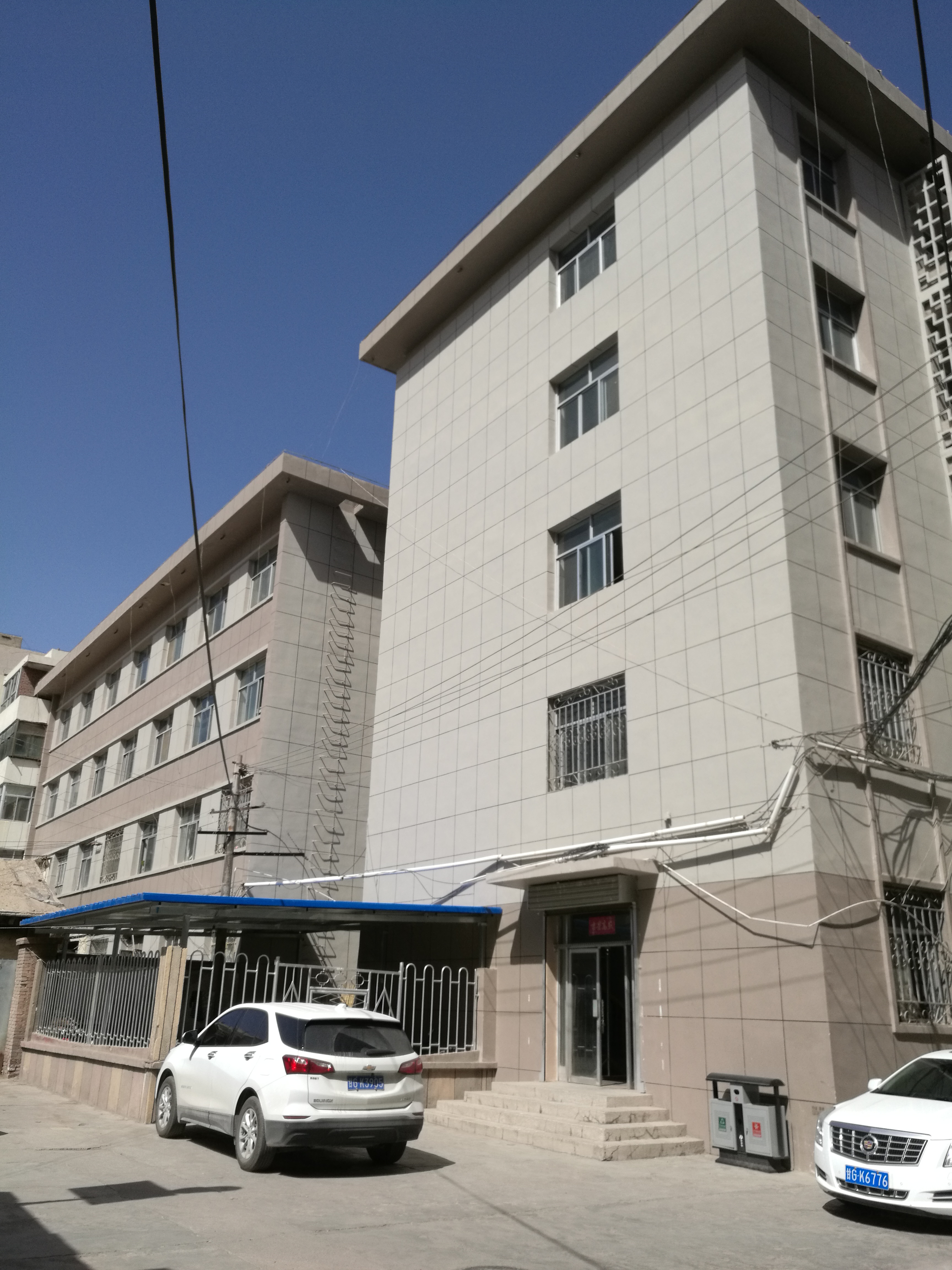 甘州区粮食局原办公楼,位于张掖市甘州区西大街399号,混合结构四层局部五层,总建筑面积约2049.56 m2,其中一层商铺479.25 m2。院内洗浴中心建筑面积274.01 m2,彩钢车棚55.23 m2,砖木平房73.50 m2,砖木车库32.60 m2。
